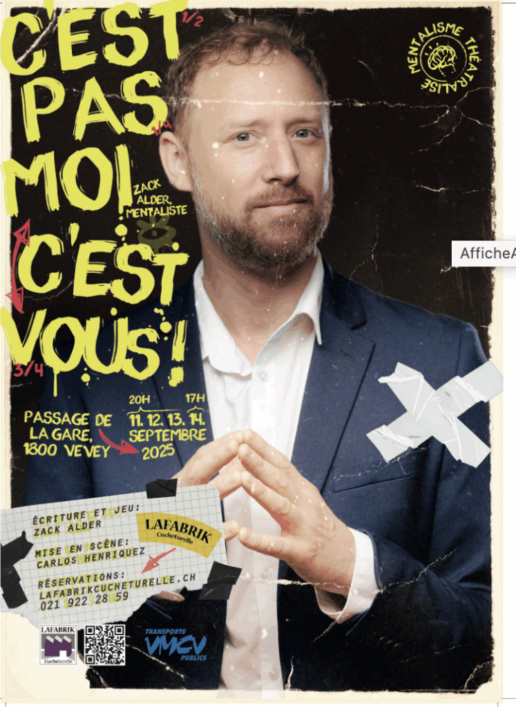 Zack Alder reprend les codes du mentalisme pour mieux les détourner et propose un moment rare : un mentalisme sincère, où l’on parle autant de perception que d’identité, de bluff que de vulnérabilité, de mémoire que de fiction partagée.
